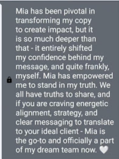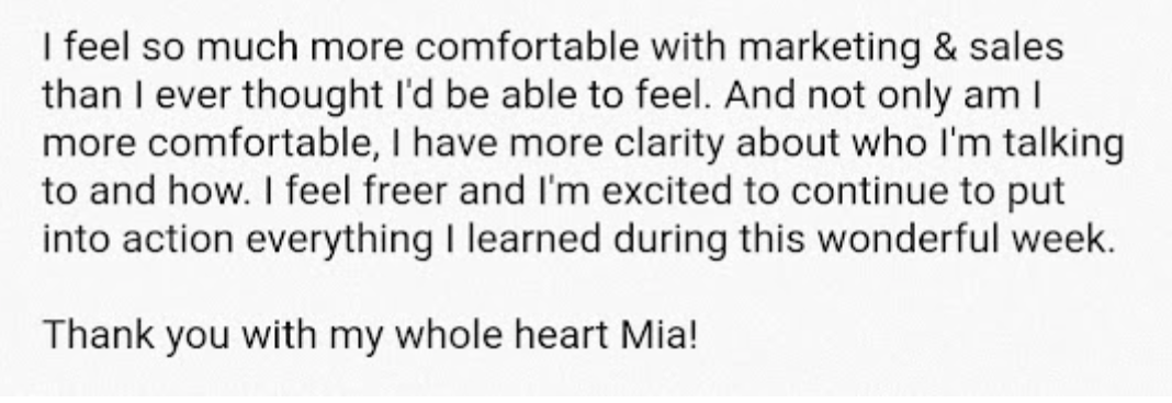 Extensive business, sales, and copywriting training from Melanie Aubert, Claudia Mangeac, Taylor Lee, and CopyHackers - as well as running my own copywriting and marketing consulting business for 6 years,